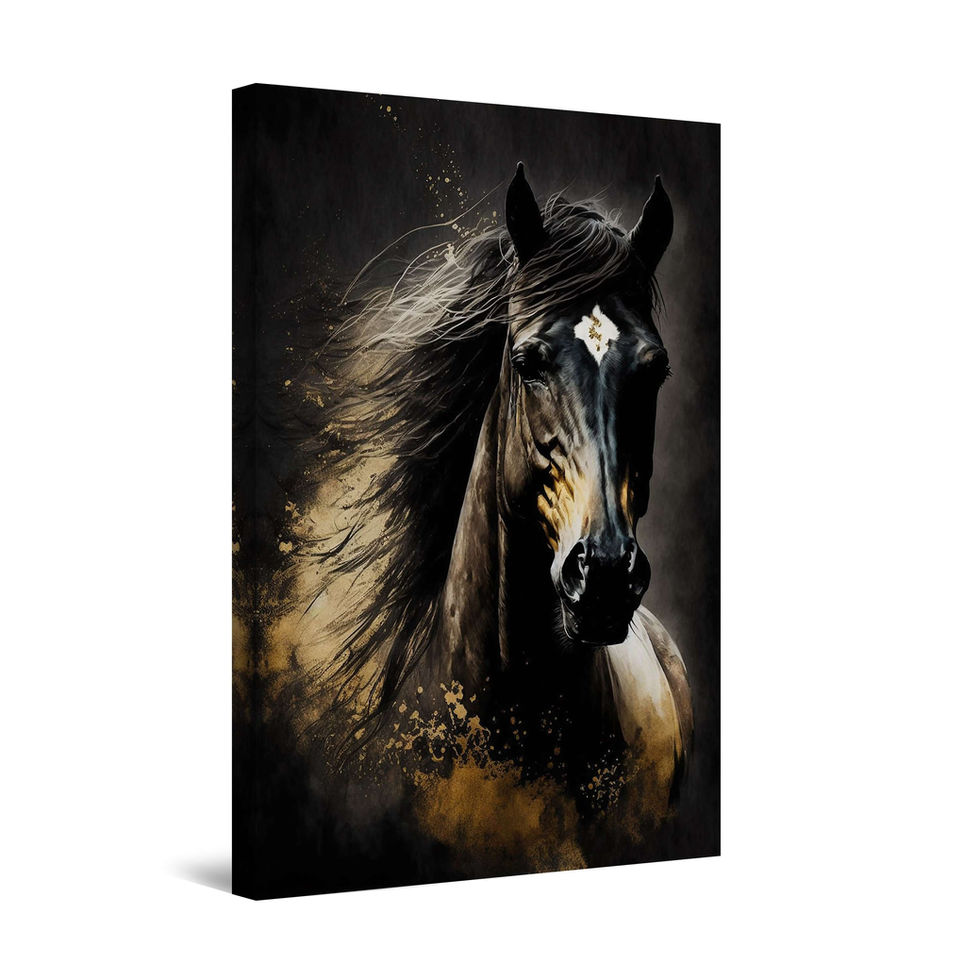 Cal Negru Auriue pentru camere în care vrei să se simtă mai bine, fără să schimbi tot. Ziua arată curat și premium, iar seara apare un accent discret după ce se stinge lumina. Bine de știut: Print premium pe Canvas, gata de pus pe perete. Două dimensiuni: 60x90 și 80x120. Efectul se vede după încărcare la lumină, apoi devine vizibil în întuneric.