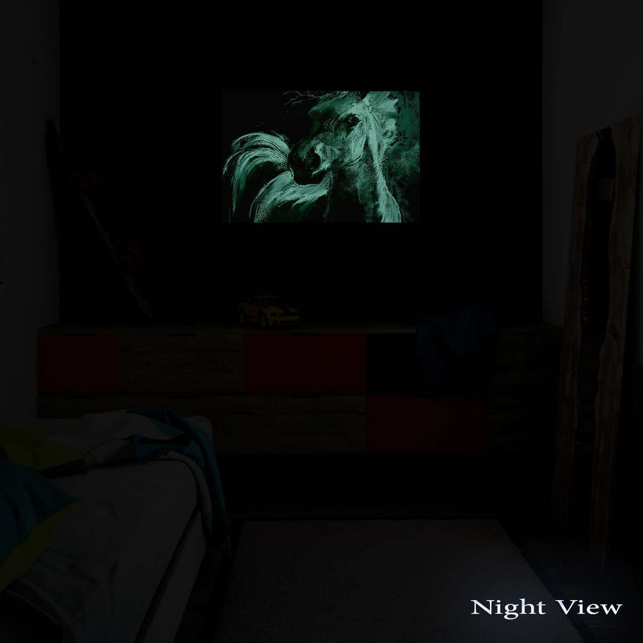 Tablourile Startonight Dual-View sunt imagini de inalta rezolutie imprimate pe panza intinsa pe sasiu de lemn. Ele absorb lumina naturala sau artificiala, si emit o lumina calda cu efect linistitor pe timp de noapte, oferindu-ti doua lucrari de arta unice intr-una singura. Cerneala speciala pe care o folosim nu contine fosfor. Toate tablourile Startonight sunt ambalate in siguranta in folie cu bule si cutie de carton.