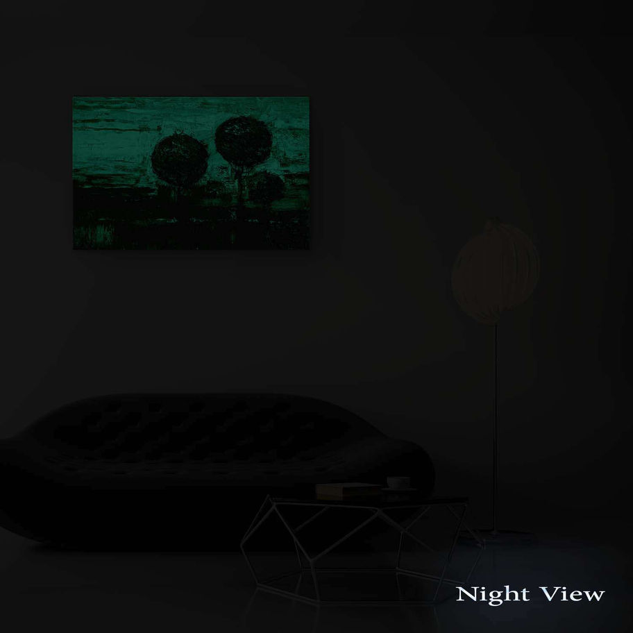 Tablourile Startonight Dual-View sunt imagini de inalta rezolutie imprimate pe panza intinsa pe sasiu de lemn. Ele absorb lumina naturala sau artificiala, si emit o lumina calda cu efect linistitor pe timp de noapte, oferindu-ti doua lucrari de arta unice intr-una singura. Cerneala speciala pe care o folosim nu contine fosfor. Toate tablourile Startonight sunt ambalate in siguranta in folie cu bule si cutie de carton.