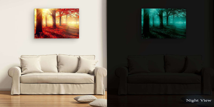 Imprimarea de inalta rezolutie ofera o calitate exceptionala a imaginii, iar tehnologia de iluminare Dual-View permite sa te bucuri de doua perspective diferite ale aceluiasi tablou. Iluminarea sa de lunga durata aduce un plus de magie in decorul tau, radiind o lumina discreta pana la 8 ore, fara consum de energie.