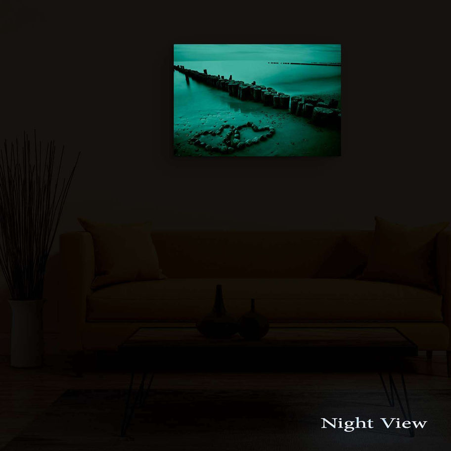 Tablourile Startonight Dual-View sunt imagini de inalta rezolutie imprimate pe panza intinsa pe sasiu de lemn. Ele absorb lumina naturala sau artificiala, si emit o lumina calda cu efect linistitor pe timp de noapte, oferindu-ti doua lucrari de arta unice intr-una singura. Cerneala speciala pe care o folosim nu contine fosfor. Toate tablourile Startonight sunt ambalate in siguranta in folie cu bule si cutie de carton.