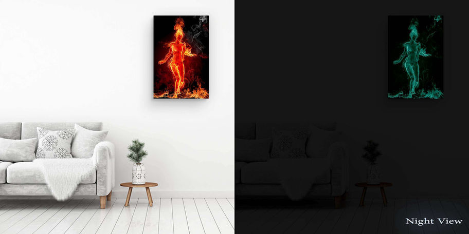 Tablourile Startonight Dual-View sunt imagini de inalta rezolutie imprimate pe panza intinsa pe sasiu de lemn. Ele absorb lumina naturala sau artificiala, si emit o lumina calda cu efect linistitor pe timp de noapte, oferindu-ti doua lucrari de arta unice intr-una singura. Cerneala speciala pe care o folosim nu contine fosfor. Toate tablourile Startonight sunt ambalate in siguranta in folie cu bule si cutie de carton.