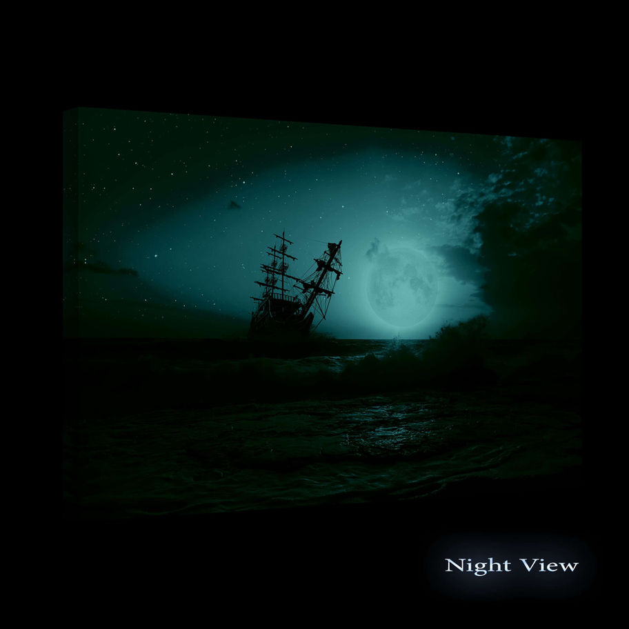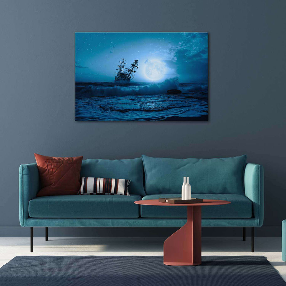Tablou Startonight Nava Albastra si Luna, 60 x 90 cm