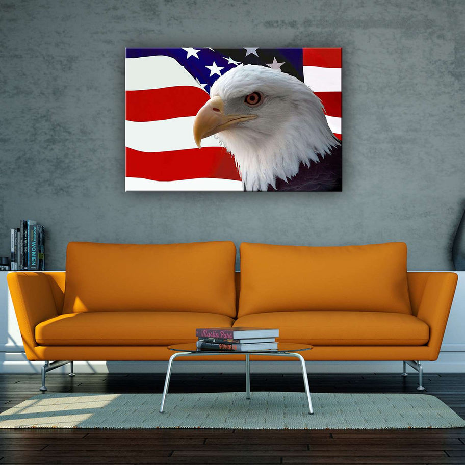 Tablou Startonight Vultur american pe steag, 60 cm x 90 cm